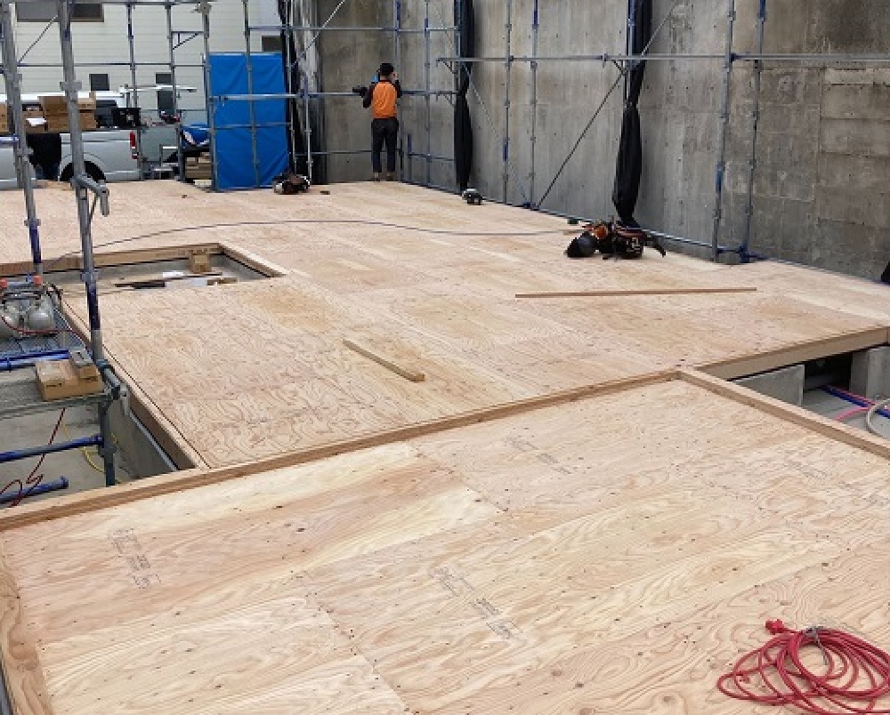 断熱材、床板を貼り1日で床伏せ工事は完了です。