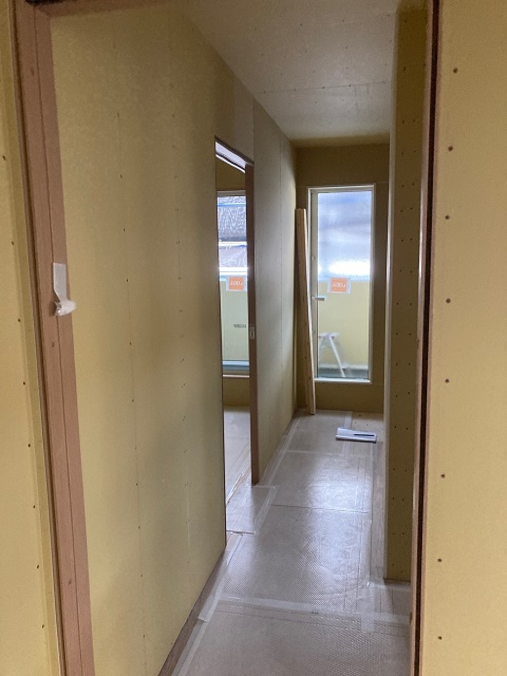 壁も覆われていくと、空間が仕切られて居室らしくなっていきます。