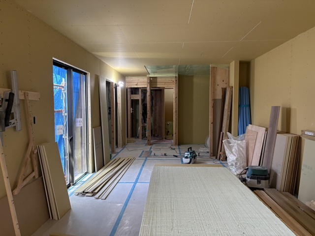 大工工事が終わり内部の工事はクロス工事が進んでいます。
