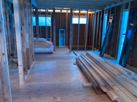 この後、ボードで天井や壁が覆われて居室の空間が出来上がってきます。