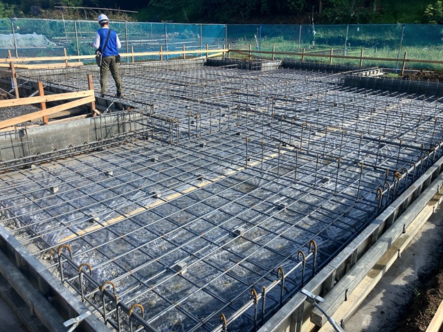 基礎の配筋が組まれ、第三者機関による配筋検査を行いました。
