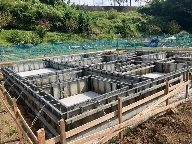 土台部分のコンクリートが固まり、立ち上がり部分の型枠が組まれました。