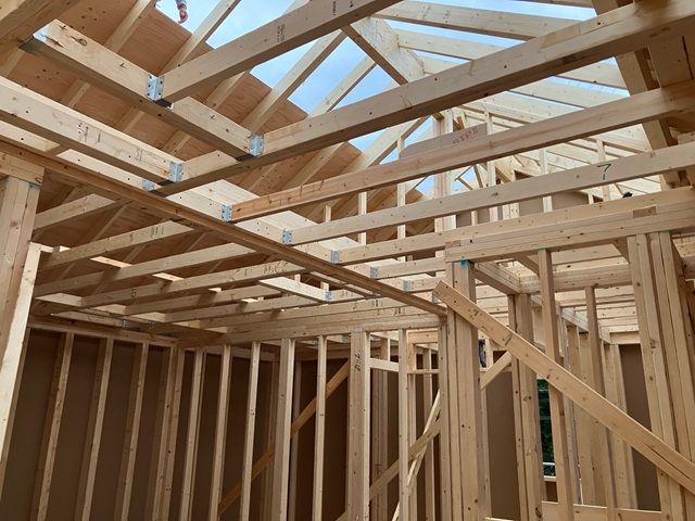 上棟後、防水シートの施工が行われるまではブルーシートで養生を行います。
