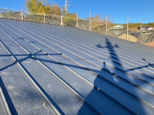屋根部分にはアスファルトルーフィング(防水シート)の施工が行われています。
