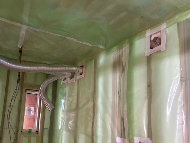 吹付断熱は吹き付けると泡状になって広がり、細かな隙間までしっかりと充填できます。