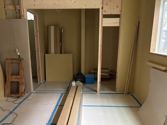 この後ボードを貼っていき壁や天井が仕上がっていきます。