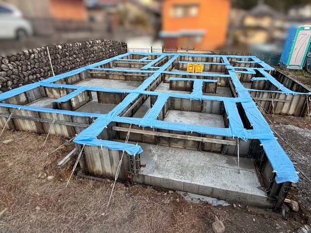 数日間養生期間を置き、その後立ち上がり部分のコンクリートを流し入れます。