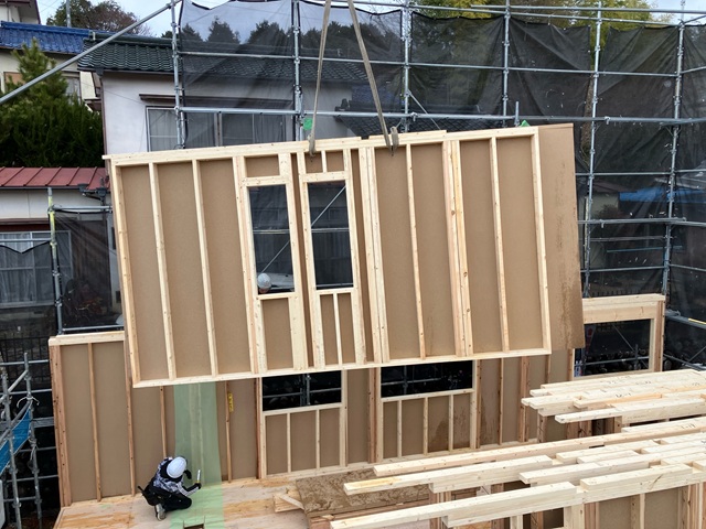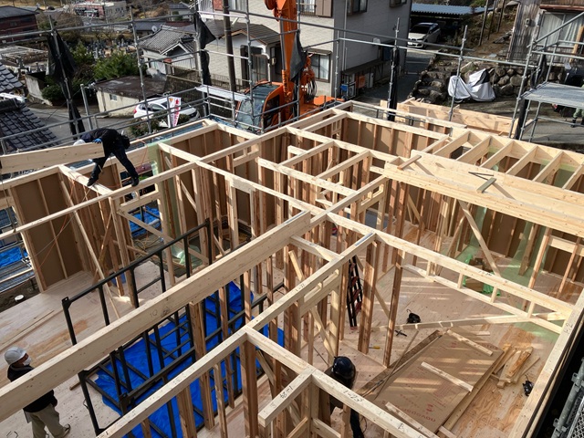 2階部分から施工していき、この後1階部分も大工工事が進んでいきます。