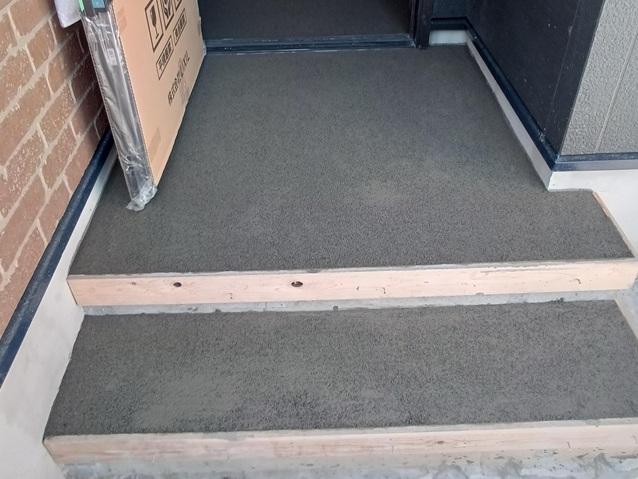 立ち上がり部分の型枠が外れ、玄関ポーチ部分に置いコンクリートを入れました。
