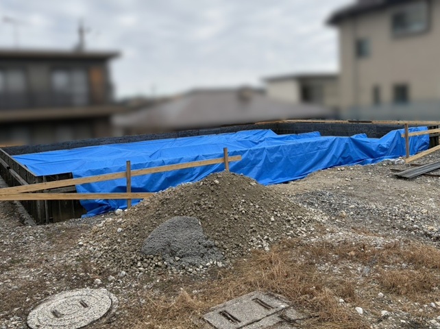 配筋検査をクリアした後、土台部分のコンクリートが流し込まれました。