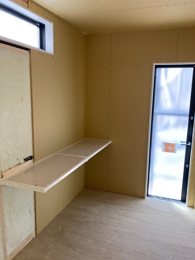 断熱材の上から石膏ボードを貼り壁が出来上がっていきます。