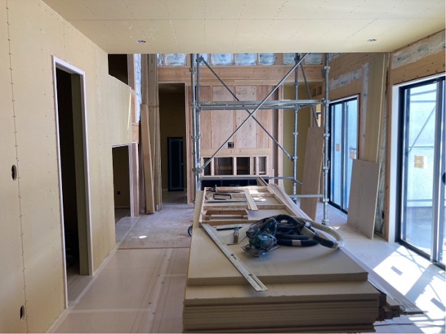 壁が石膏ボードで覆われると現場内の雰囲気も一気に変わります。