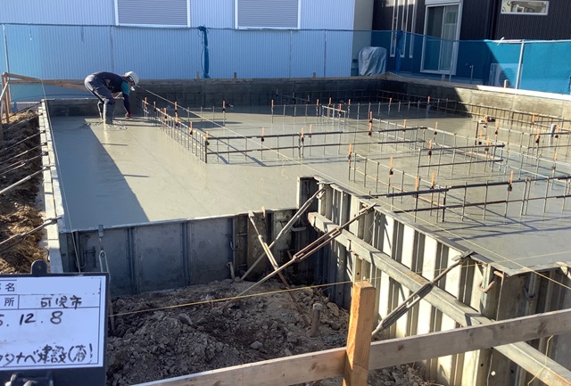 配筋検査をクリアし、コンクリートが流し込まれました。
